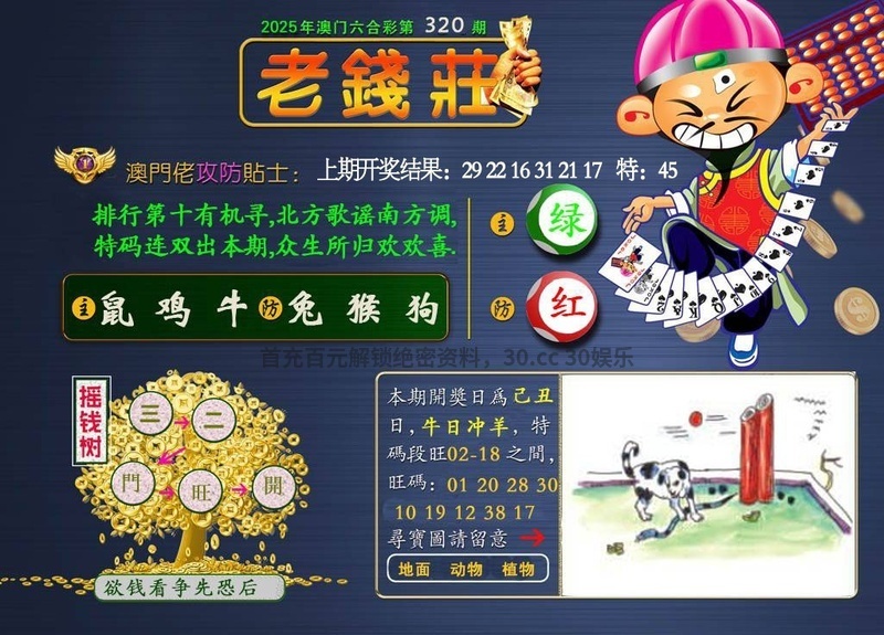313期独家六合玄机:三兄有势走幸运,开头结尾定有局,生肖今期定单蓝,单绿特码开本期 幸运波段:32-46 |